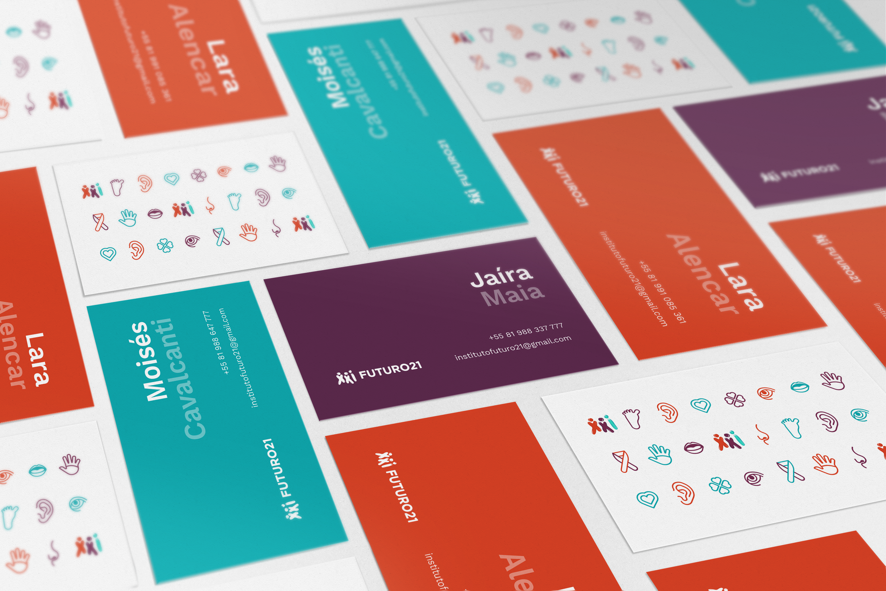 O Instituto Futuro 21 está localizado em Recife, PE, e trabalha com ações para desmistificar a Síndrome de Down, ajudando os pais das crianças em seus primeiros momentos nos cuidados com a saúde e educação de seus filhos. O processo da marca começou após bastante conversa com os quatro fundadores do instituto. A ideia era comunicar a essência da Síndrome de Down de forma leve e diferente.